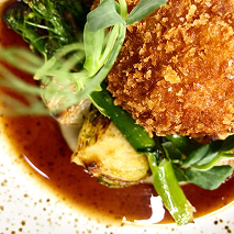 Wild mushrooms, truffle, crunchy almond, polenta and mushroom cream.